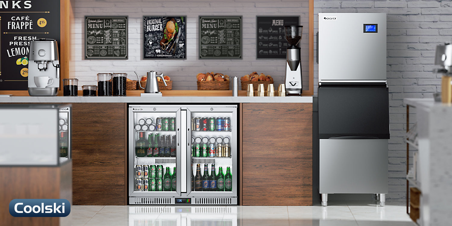 Coolski Back Bar Cooler with 2 Glass Doors, Under Counter Beverage Refrigerator, NSF Certified Stainless Steel
