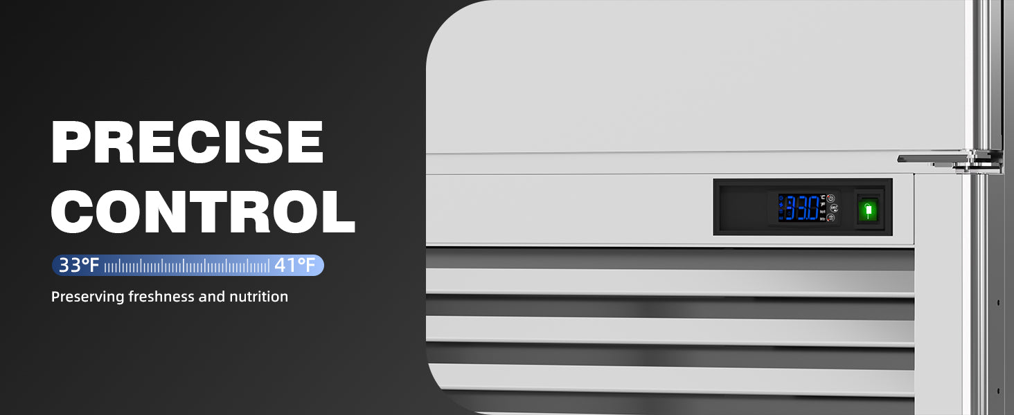 - Efficient Air Cooling System: The Coolski commercial refrigerator features an efficient cooling system with a digital temperature display, ensuring that your ingredients are stored at optimal temperatures between 33℉ and 41℉. This energy-saving design helps maintain freshness while locking in nutrients.