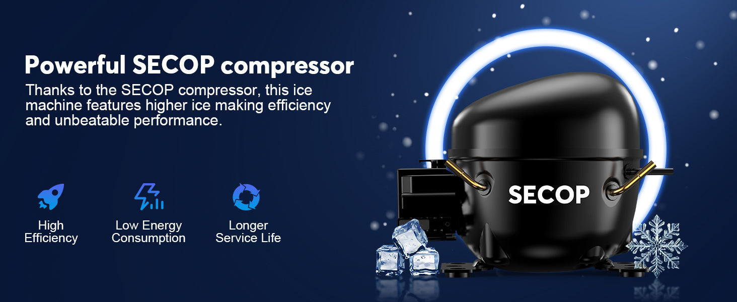 [Upgraded SECOP Compressor] Advanced Coolski under-counter ice machine is the perfect solution for your ice needs! A SECOP compressor allows for powerful performance and maximum efficiency. Enjoy up to 320 lbs of ice per day—that's over 20,000 lbs of ice per month! Get ready for superior ice production with this sophisticated ice machine.