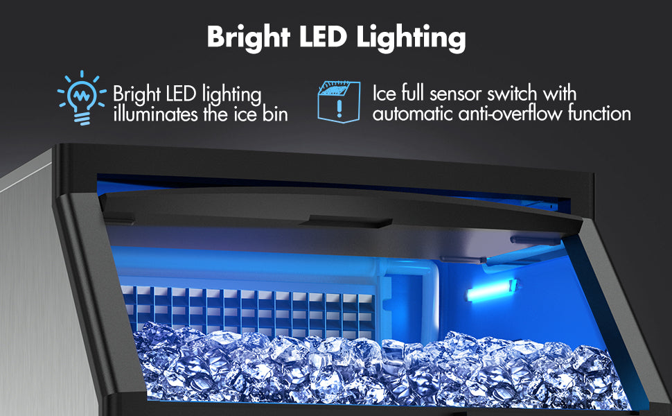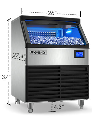 [Space-saving Ice Maker] At just 26x27x35 inches, it easily fits under countertops and in tight spaces. This efficient under-counter commercial ice maker is the great addition to any busy establishment, whether it be a bar, restaurant, office or even for casual family gatherings. Say goodbye to ice shortages!