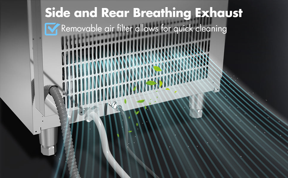 [Easy-to-use Digital Controller] Efficiently make perfect ice cubes with our under counter ice maker. Its built-in diagnostic system ensures optimal performance while the intuitive digital controller allows for real-time monitoring, customization of ice cube thickness and reservation. Keep your business running smoothly and efficiently with us.