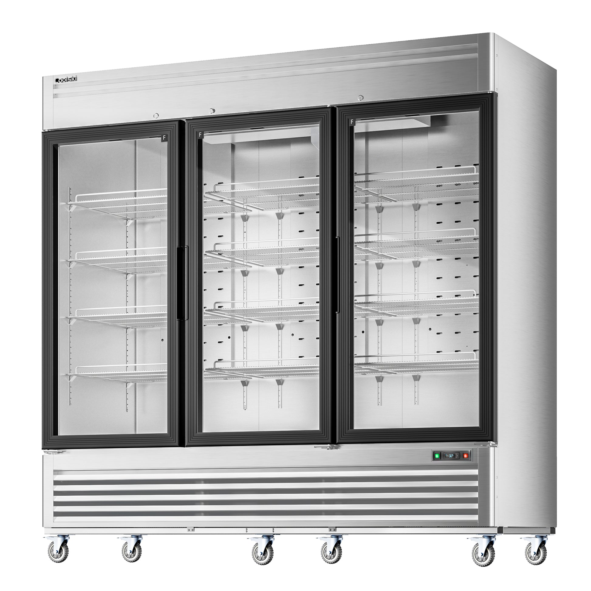 Coolski 82 in. 78.2 cu. ft. Auto / Cycle Defrost 3-Glass Door Commercial Reach In Display Upright Freezer in Stainless Steel