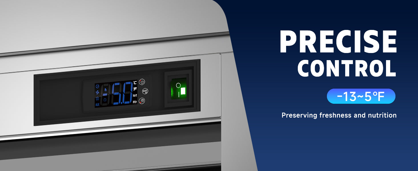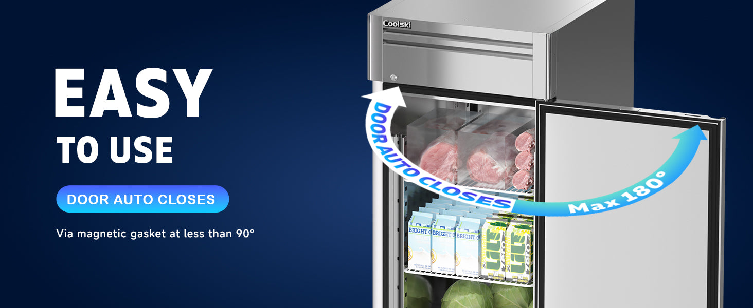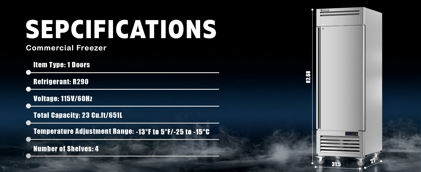 - Efficient Air Cooling System: The Coolski commercial freezer features an efficient cooling system with a digital temperature display, ensuring that your ingredients are stored at optimal temperatures between -13℉ and 5℉.